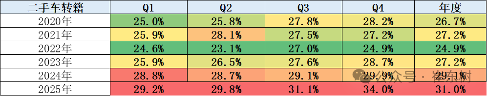 2025年4季度,全国新能源二手车使用年限在2年以下的占比40.3%,较去年同期大幅提升。