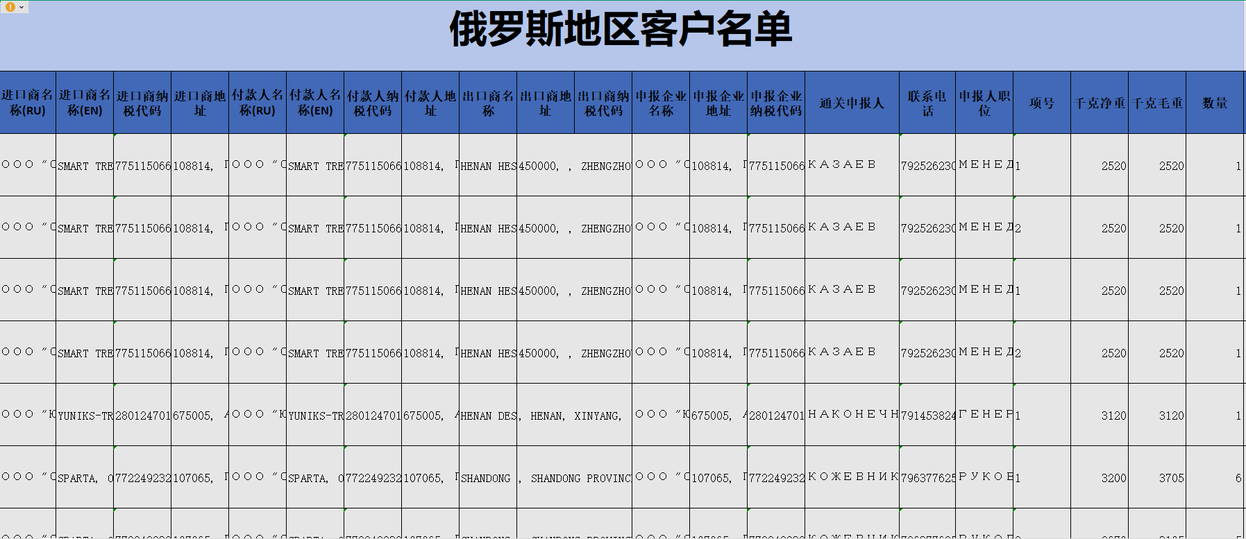 以“俄罗斯”举例,随便找一个客户信息,“MEILIN AUTO, LLC在之前某条采购信息为:蓝图汽车,DAP,38383.15美元。