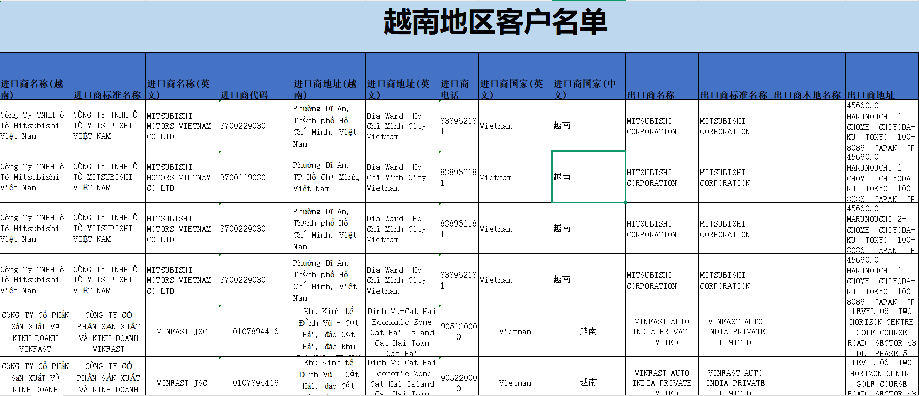 以“越南”举例,随便找一个客户信息,Công Ty TNHH ô Tô Mitsubishi Việt Nam 在之前某条采购信息为:三菱Xforce(其实就是国内的“劲炫”),CIF,377518美元