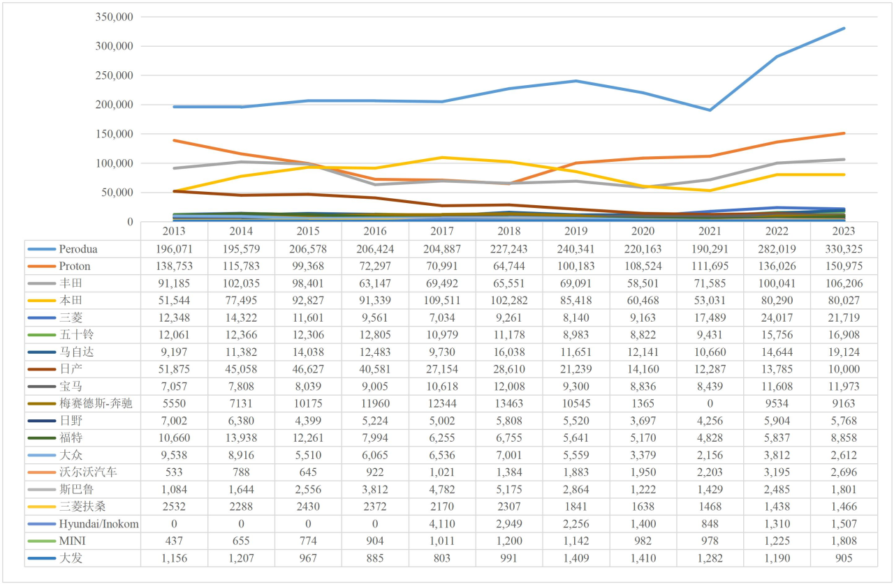 2013-2023 年部分品牌在马来西亚销量