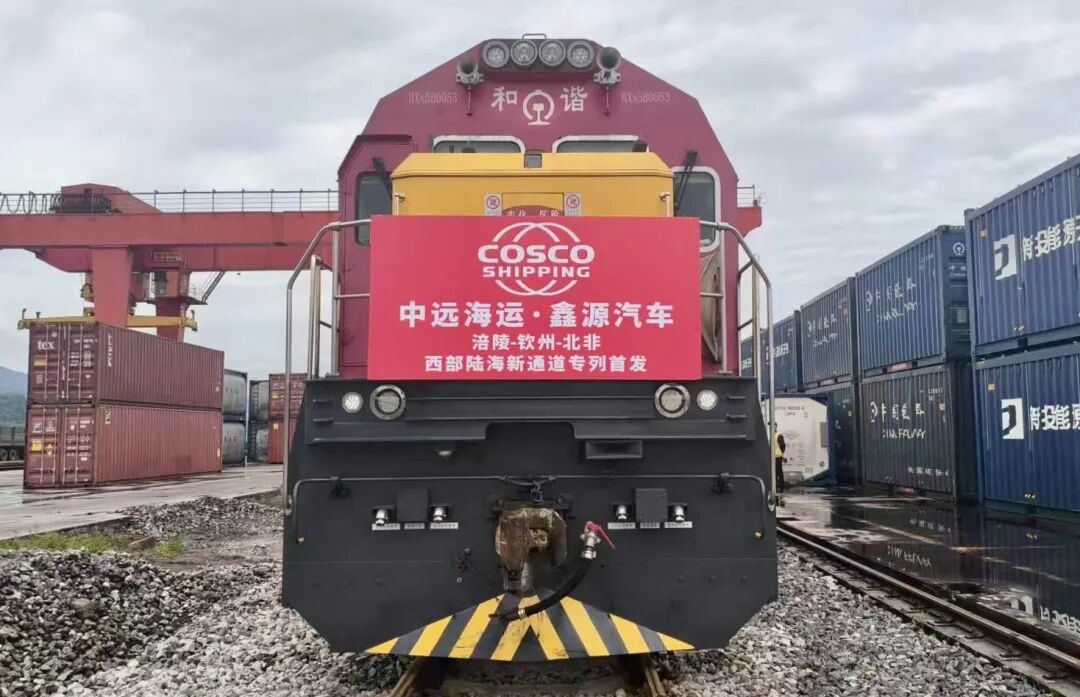 一列满载汽车SKD件的西部陆海新通道铁海联运班列,从涪陵龙头港首发。此趟班列将经广西钦州港出海,最终运抵北非阿尔及利亚斯基克达港,标志着“渝车出海”再添新通道,进一步拓展非洲市场。