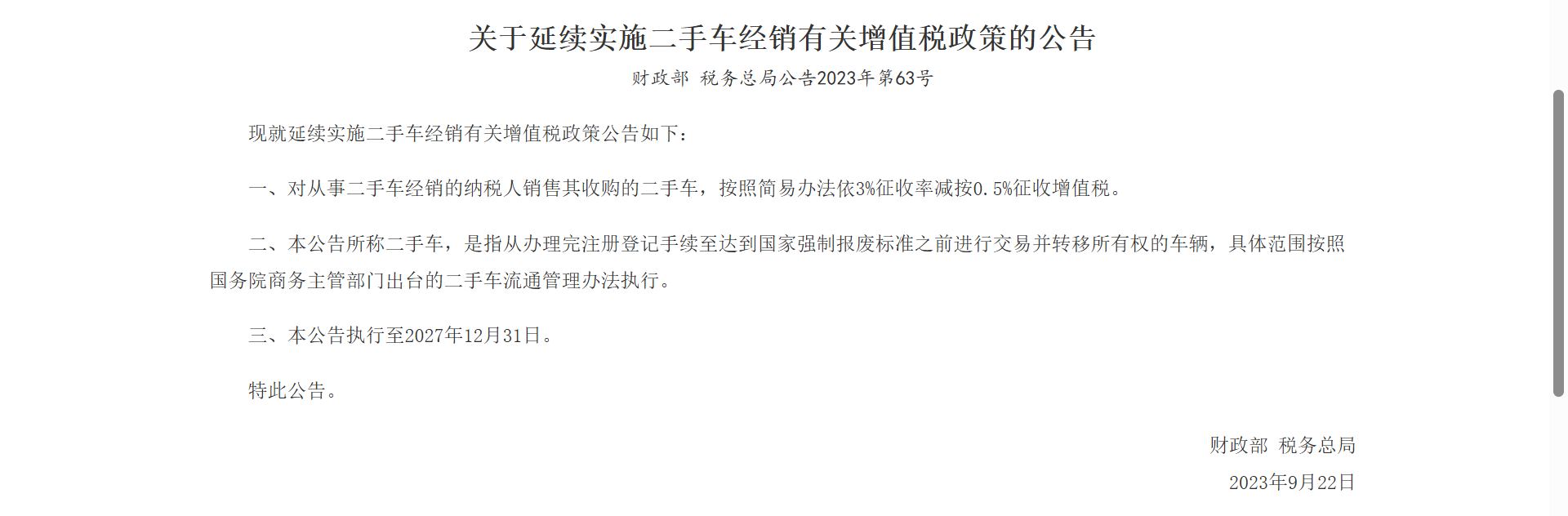 02政策二:二手车经销增值税减按0.5%征收,延续至2027年底