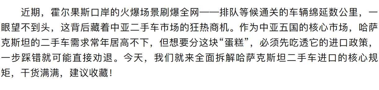 霍尔果斯爆堵!哈萨克斯坦二手车进口政策详解