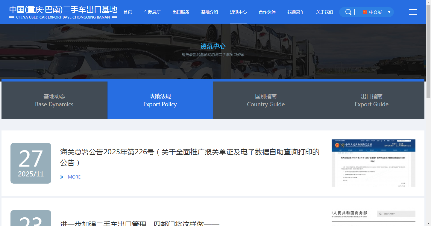 2025年12月1日,中国(重庆·巴南)二手车出口基地官方网站(www.cncarexportbase.com)正式上线运营,标志着重庆首个集车辆采购、检测整备、国际物流、金融服务等全链条功能于一体的二手车出口综合服务展示平台完成数字化升级,在推进“内外贸一体化”战略中迈出关键一步,为西部地区对接全球市场打造“数字枢纽”注入强劲动能。