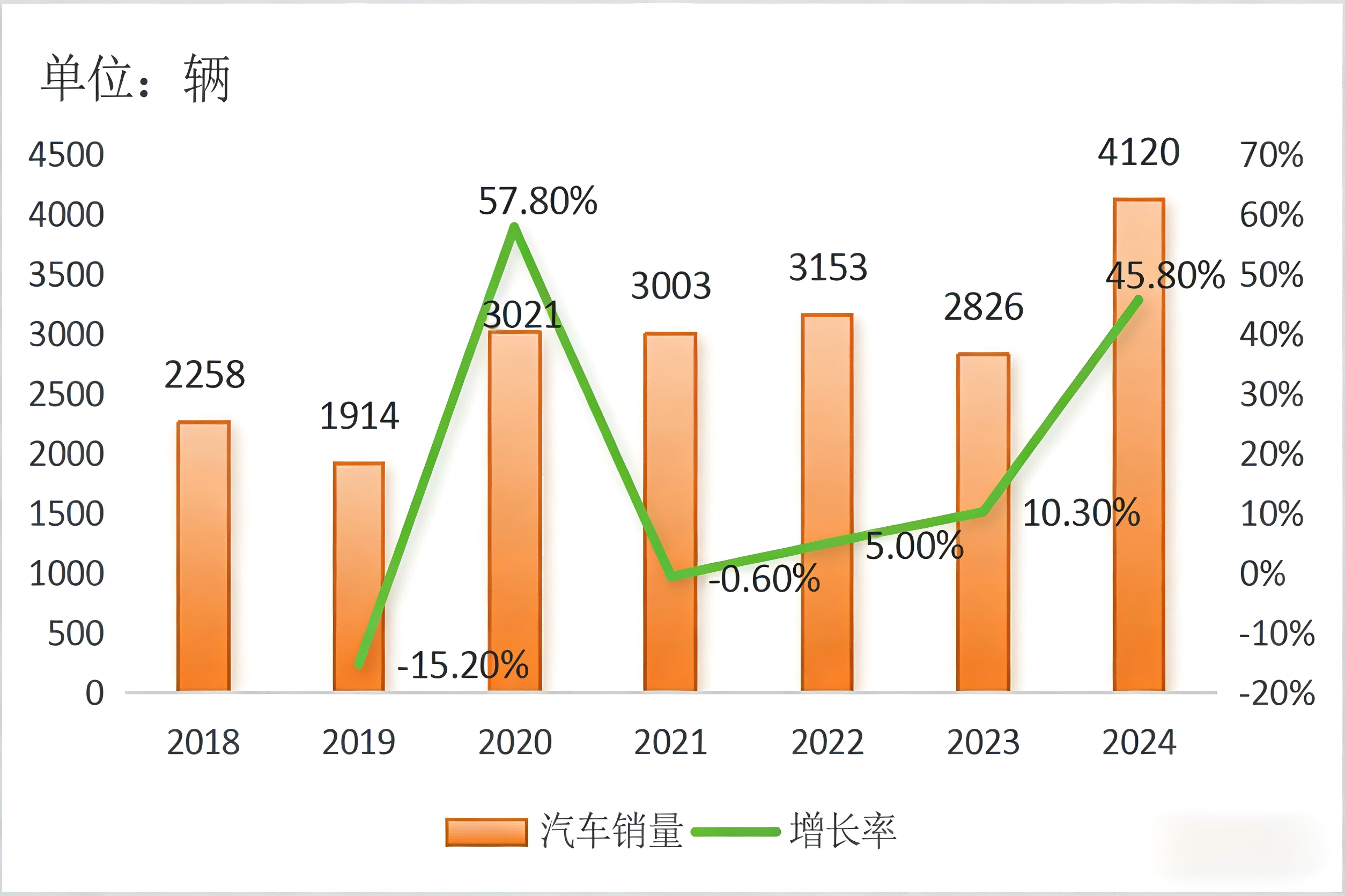 坦桑尼亚是右舵国家,汽车工业发展不成熟,汽车市场以进口二手车为主。其新车销量由于二手车进口的便捷性受到相当大的制约,长年稳定在2000-3000辆。坦桑尼亚二手车市场规模较大,主要从日本、阿联酋等地区进行二手车进口。2024年,坦桑尼亚汽车市场全年销量达4120辆,增长45.8%。从品牌数据来看,丰田销量排名第一,增长29.6%。其次是五十铃和福特分别增长了80.4%和39%,排名第二和第三。