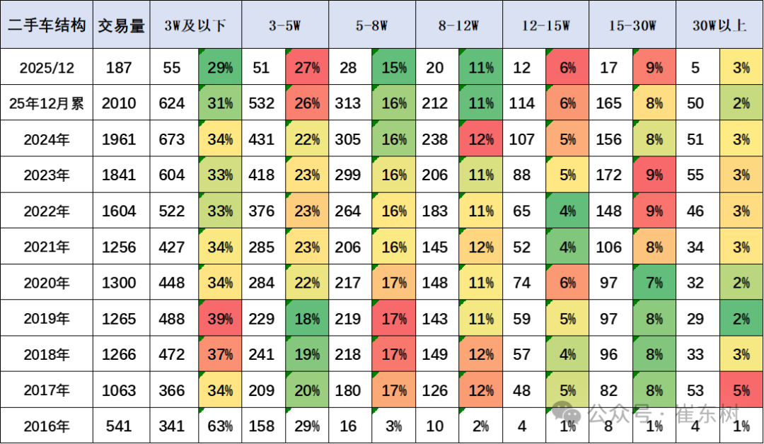 2025年4季度,全国新能源二手车使用年限在2年以下的占比40.3%,较去年同期大幅提升。